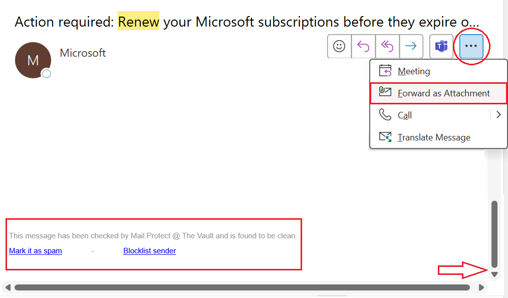 - Review email footer. You can block or marked email as spam (This feature may not be available for non-mail protect customers)